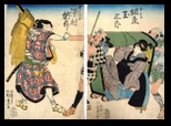 Cincuenta y tres estaciones del Tokaido, dos pinturas , "Sohitsu gojusan tsugi no uchi" (1852)