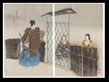 Kyogen Gojoban (1927). Tsukioka GyokuseiKyogen Gojoban editado en 1927, es una serie de 50 grabados diseñados por Kogyo y su hija Tsukioka Gyokusei. Ella creo 34 grabados y la tabla de contenidos. Estos diseños están inspirados obras de Kyogen, las cuales son comedias y forman parte de las representaciones de teatro Noh.